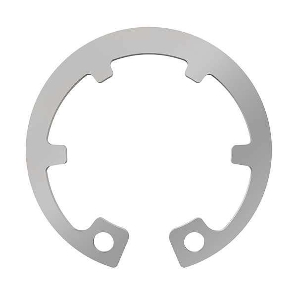 Shaft standard ring, axially assembled, internal teeth. Metric. Similar in design to the I ring, this features several teeth equally distributed along the circumference of the ring. The increased shoulder offered by the teeth is particularly effective in retaining applications with large radius or chamfers