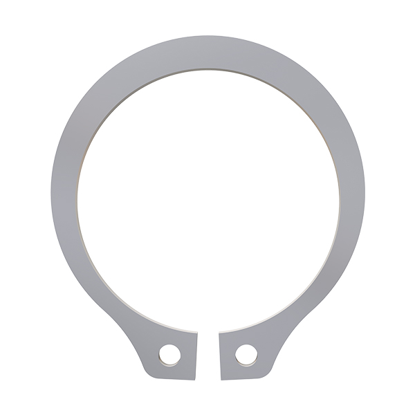 Shaft standard ring, axially assembled, external. Metric. Once installed in the groove of a shaft, the portion of the ring protruding from the groove holds an assembly in place.